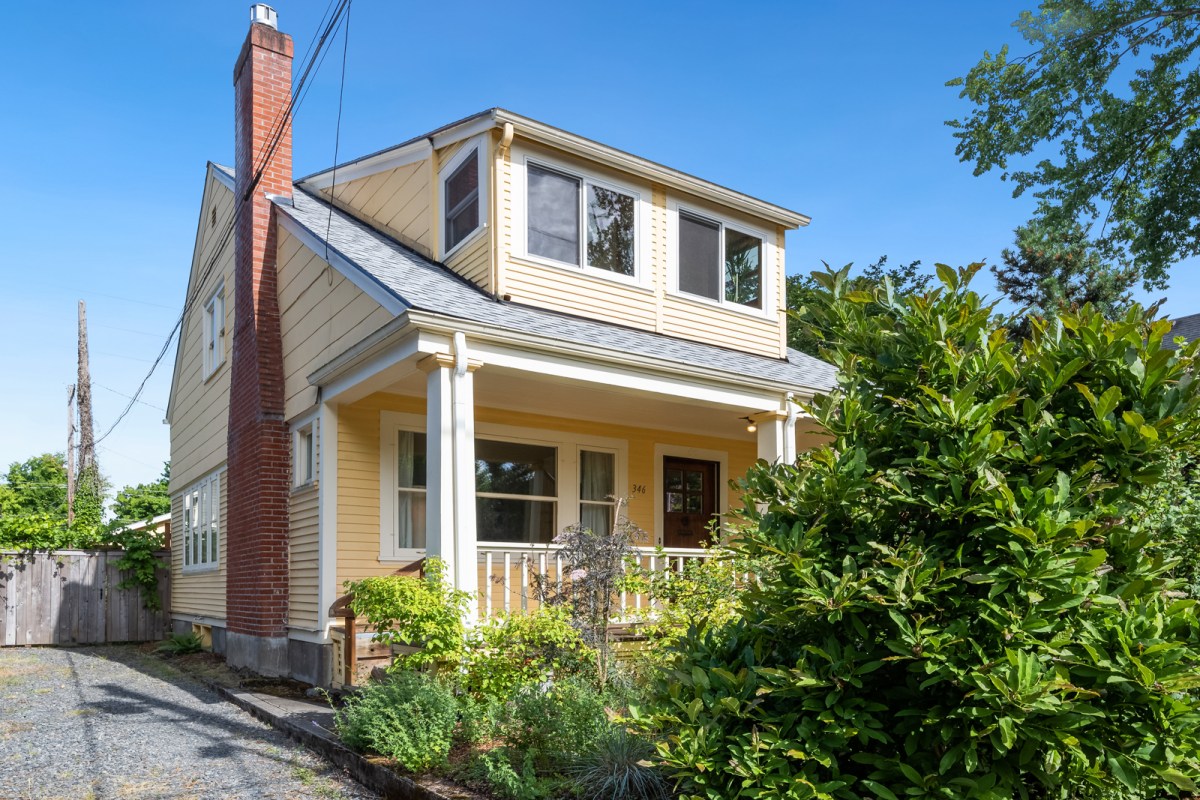 Oh-so-charming light-filled farmhouse in the heart of vibrant Buckman. Enjoy every last Craftsman detail from the welcoming front porch to the hardwood floors and original trim and doors. You’ll be greeted by a large living room, complete with built-ins and gas fireplace. Get ready to entertain in the airy dining room and roomy kitchen. Upstairs is the primary bedroom with two closets, a bright attached sunroom/bonus space, big second bedroom with double closets (again!), and a full bathroom with a bathtub. An additional bedroom w/egress window and beautiful full bath are found on the lower level, along with laundry and storage. Sunny backyard has everything for summer: raised beds, wooden deck, organic grapes and berries for snacking, lawn and covered seating area/storage. Front yard hosts a lovely rain garden bursting with native plants and aromatic jasmine. Peace of mind with updates galore including new roof, insulation, seismic retrofit, newer water heater, electrical system (approx 75%), designer lighting, recent exterior paint, refinished interior doors and rebuilt chimney. Newer high-efficiency furnace and central AC will keep you comfortable regardless of season.